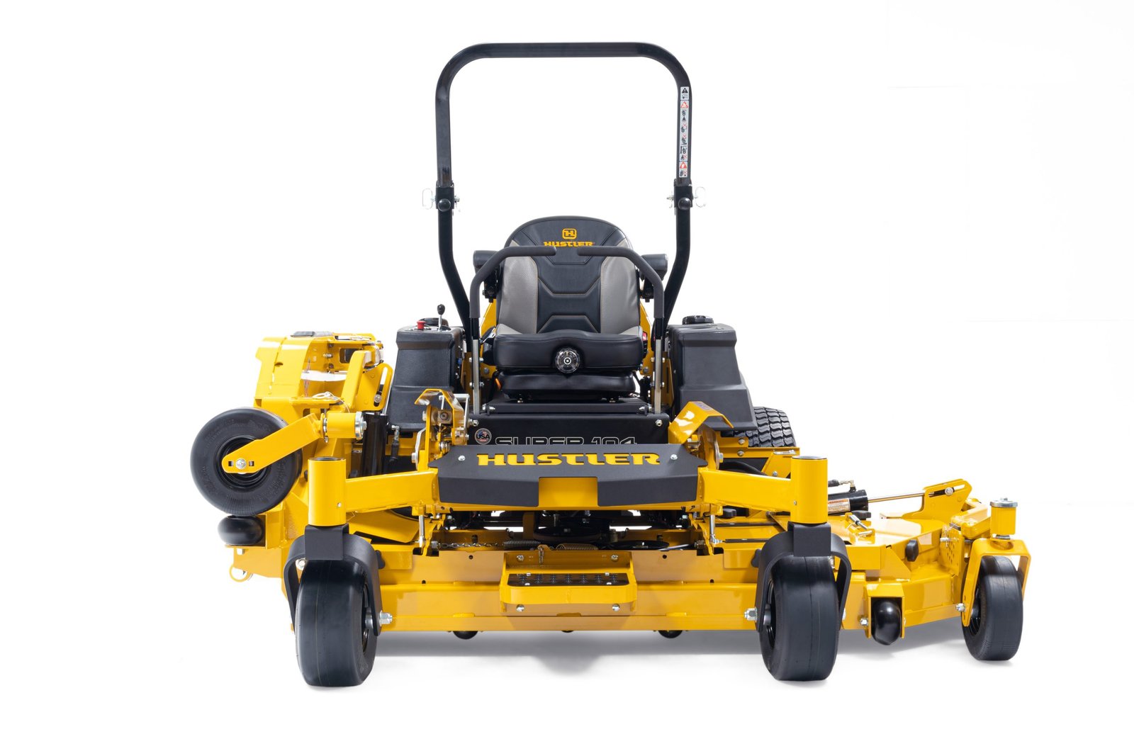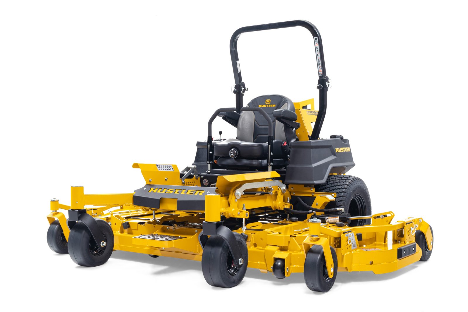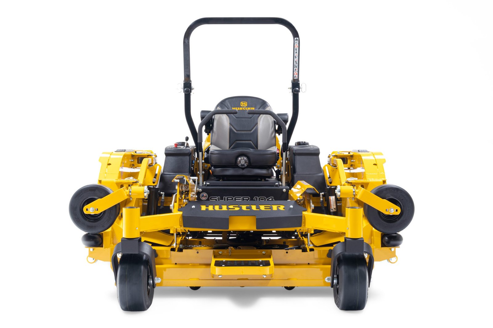 Hustler’s Super 104™ can easily handle acres of work. Offering a 104″ width of cut, zero-turn precision and up to an impressive 11 mph speed, this machine is in a class by itself.