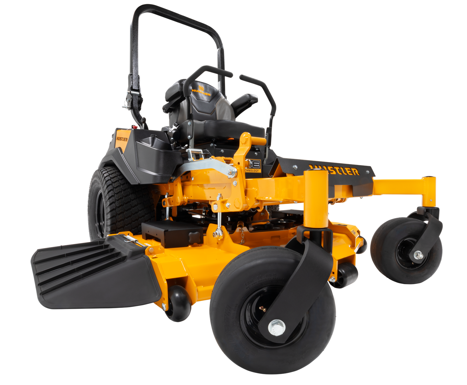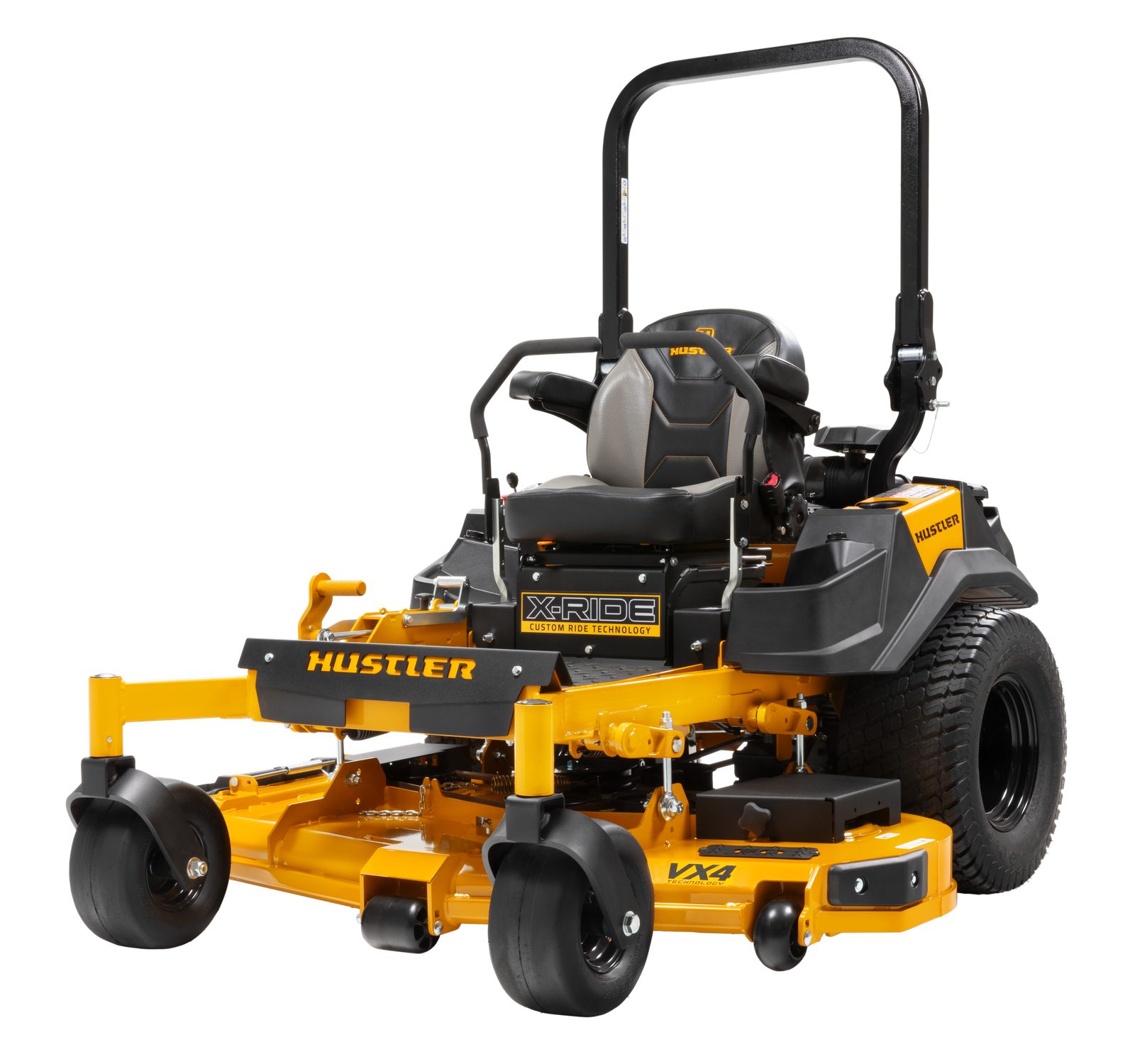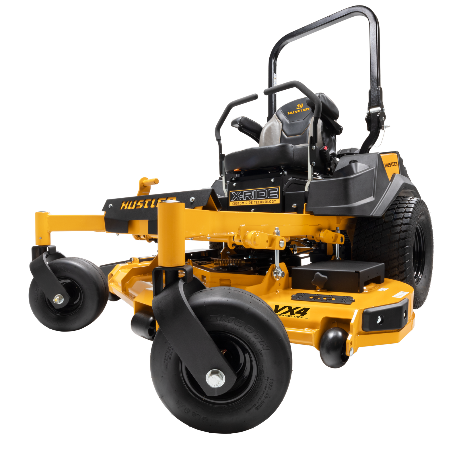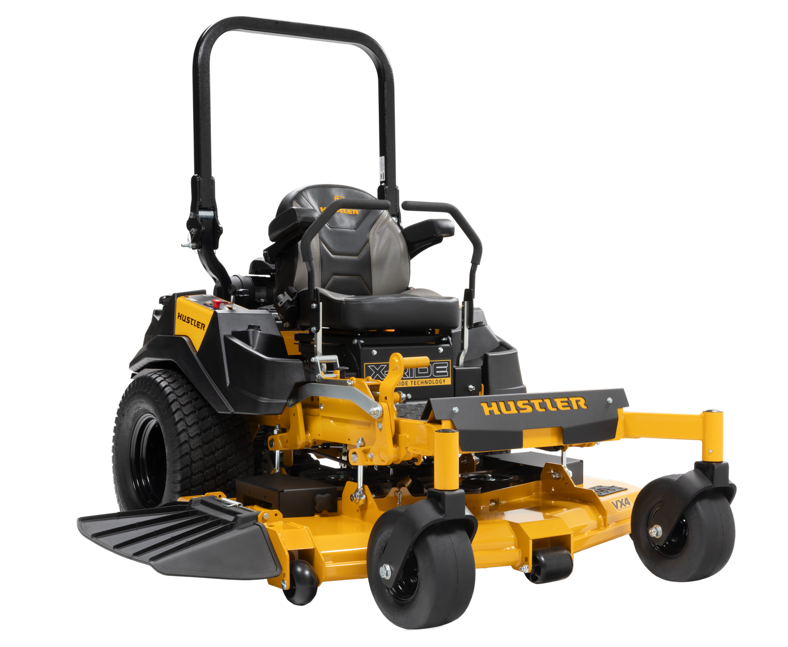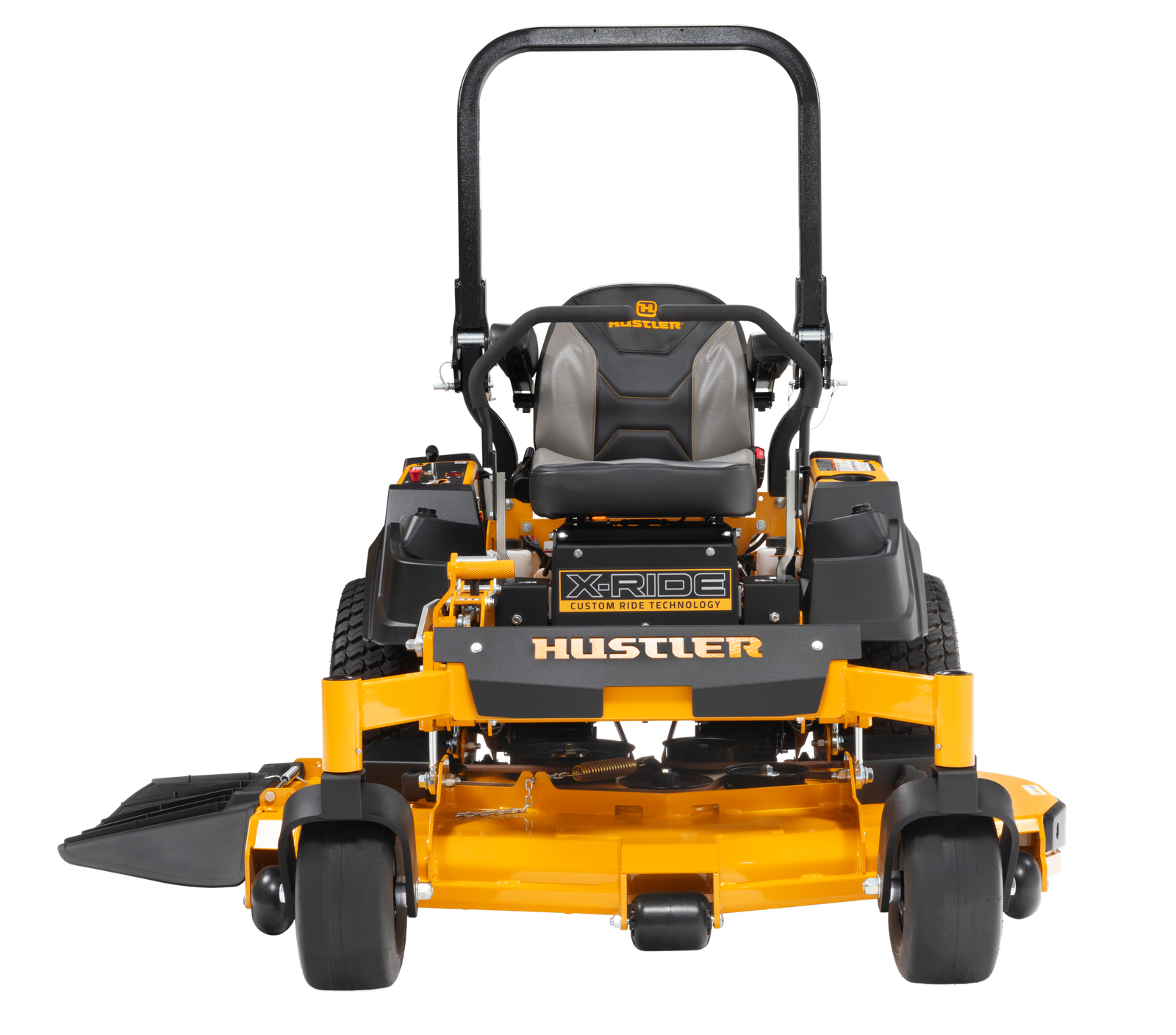 The new Hustler X-Ride is equipped with Custom Ride Technology, an isolated operator suspension platform designed to deliver a comfortable ride for the operator even while on rough terrain. The platform absorbs up to 4 inches of travel and has 5 levels of adjustability for the operator to find their comfort preference all while maintaining the stability on the mower.