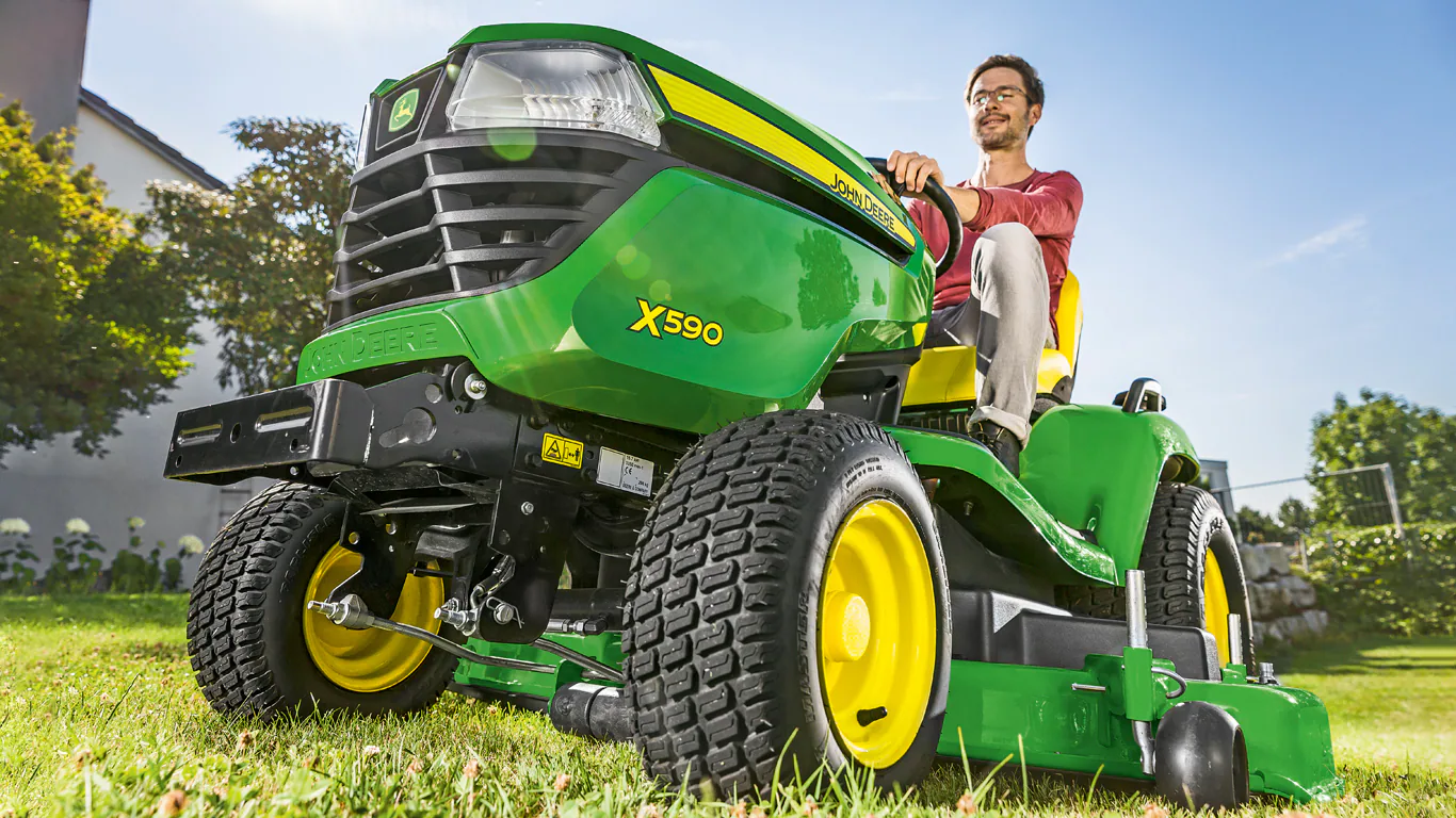 Take ease of use to the next level – the X590 features power steering for effortless control. Our multi-terrain tractor travels anywhere you need to go and does the heavy-duty work you need doing. Thanks to its long wheelbase, low centre of gravity, and superior traction control, you’ll mow slopes with more confidence and master any mowing challenge and terrain with total ease and outstanding precision.