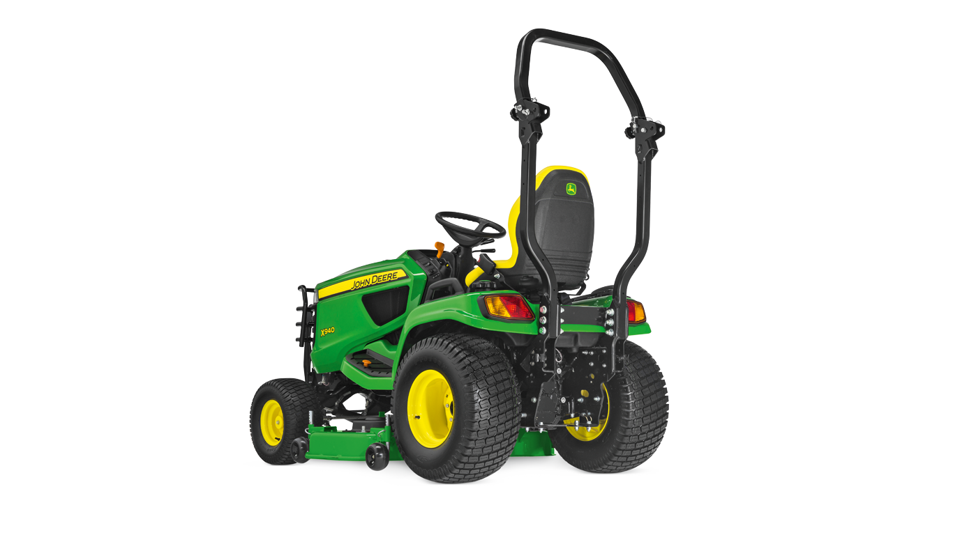 All X940 Series models are fitted with a rugged roll-over protection system (ROPS) to keep operators safe during operation. The bar can be folded down temporarily when working under trees or overgrowth.