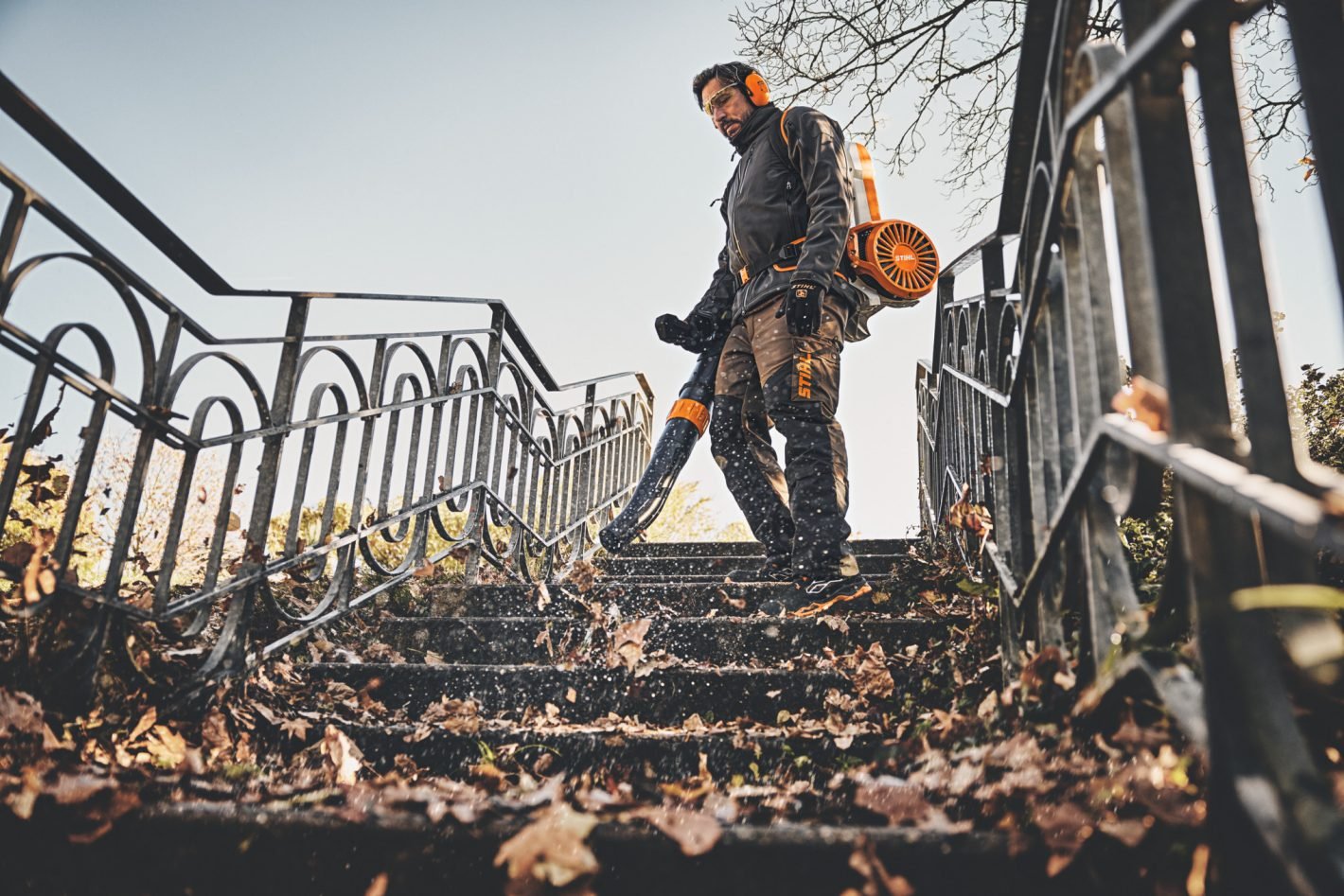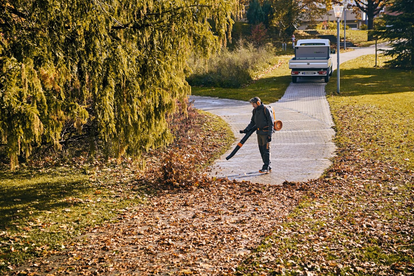The BGA 300 is the first cordless backpack blower from STIHL for professional applications in noise-sensitive areas. Ideal for efficient cleaning of large areas, even with wet and heavy leaves, the BGA 300 has petrol performance blowing force on a cordless leaf blower.