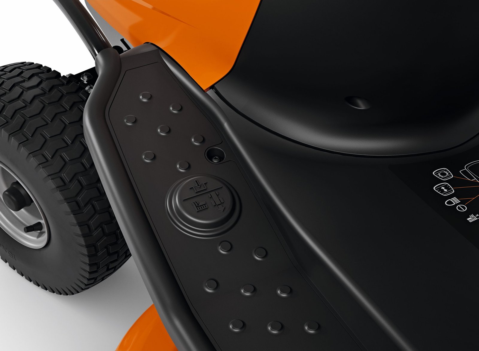 The agile STIHL RT 5097 ride-on mower will mow lawns up to 6000 m². With its high degree of driving comfort and the clearly arranged controls, this ride-on mower offers well-thought-out technology for effortless working. You can adjust the comfortably spring-loaded seat of this lawn tractor precisely to your body height without the use of tools. Thanks to the simple cutting height adjustment and the electromagnetic blade clutch for activating and deactivating the mowing deck, you achieve high mowing performance and a top-quality finish. The catching management system on both sides of the mowing deck gathers the grass across the entire cutting width and guides it towards the cutting blades. The comfortable single pedal drive allows you to manoeuvre the mower precisely, giving you full control, perfect for lawns with flower beds and shrubs. You can change the driving direction of the lawn tractor from forward to reverse gear with a single action. Thanks to the practical curve shaped handle, the 250-litre grass catcher box can be emptied effortlessly from the driver's seat. And, the polymer grass catcher box is very easy to clean. The RT 5097 comes with a 2 year warranty.